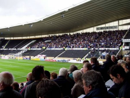 Einige Male gelang der Sprung in den internationalen Wettbewerb. Just als man glaubte sich in der 1. Liga "fest gesetzt" zu haben, folgte 2003 der Abstieg. Nun probiert man den Wiederaufstieg. Allerdings ist man von der Zielsetzung weit entfernt und der Saisonstart war wenig berauschend. Derby ist ein typischer englischer Neubau. Einzig das Dach der Haupttribüne (da 2 Ränge) ist etwas eigentümlich. Sonst ein typischer Zweckbau der 90er. Das war aber vorher klar. Je näher der Anpfiff rückte, umso mehr füllte sich der Ground. Am Ende waren es 25.044, davon ca. 2.000 Gästeanhänger. So entwickelte sich eigentlich von der