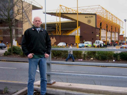 Gegen fünf vor acht fanden wir uns am Home Park ein, um die Auswärtsfahrt nach Wolverhampton mit dem Fanbus anzutreten. Abfahrt war um acht Uhr, es gab zwei 50er Busse. Nach dem doch sehr frühzeitigen Aufstehen - ich hatte die Uhr noch nicht umgestellt und den Wecker somit präzise auf 5.30 h Ortszeit eingestellt - hatten wir alle Zeit der Welt, den Verpflegungseinkauf für die Fahrt zu erledigen. Gut mit Chips, Sandwiches, Mett- sowie Vegibällchen und ähnlich nahrhaftem Essen und ohne Alkohol versorgt (laut Ticket "no alcohol on coaches") waren wir trotzdem die Letzten am Bus, was wir den Rest des Tages auch konsequent bleiben sollten. Die total langweilige knapp sechs!!! stündige Hinfahrt verging wie in Zeitlupe, vor allem, weil es den Bussen nicht erlaubt war, vor eins (kick off war 15 Uhr) die Stadtgrenze Wolverhamptons zu passieren! Da der Busfahrer uns dann noch mehrfach um und am Stadion vorbei fuhr