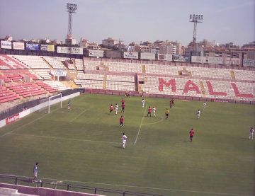 kartographisch Zuständigen zu erfahren, dass er die Beschreibung des Anfahrtsweges schlicht in seinem Zimmerchen vergessen hatte und so begann die Suche nach dem Stadion mit dem Ausschauhalten nach Flutlichtmasten. Kein leichtes Unterfangen, denn zuerst fanden wir auf diese Weise eine Hunderennbahn, dann eine Pferderennbahn und schließlich das Stadion Son Moix, wo die Erstligamannschaft der Insulaner ihre Heimspiele auszutragen pflegt (siehe Ulfs Bericht auf dieser Seite). Das Luis Sitjar ist die alte Arena und da mussten wir hin. Zum Glück gaben uns Anwesende am Son Moix dann eine Wegbeschreibung. Es ging vorbei an einem riesigen Friedhof und wir hätten sicher auch hier das Spiel vermutet, denn auch die Nekropole hatte tatsächlich Flutlicht. Das Luis Sitjar liegt mitten in einem Wohngebiet und ist dem hässlichen Son Moix unbedingt vorzuziehen. Ein einsamer Kartenabreißer schickte uns zu einem ebenso allein seienden Ticketverkäufer und nur kurze Zeit später betraten wir mit