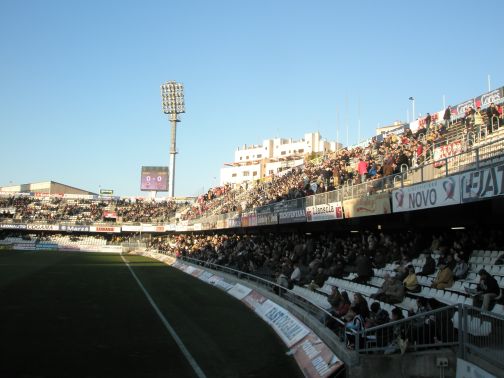 Wir hatten uns im Vorfeld für eine Partie entschieden und so kamen wir in den Genuss der Begegnung CD Serrano - Athletic Barrio del Carmen. Letztere sind ein Klub von in Valencia lebenden Argentiniern, der berüchtigt ist für seine rustikale Spielweise. Davon war bis zu unserem Aufbruch nichts zu sehen, stattdessen entwickelte sich ein munteres Spiel auf ansprechendem Niveau. Bis zur 85. Minute stand es 2:1 für Barrio del Carmen, dies war auch der Zeitpunkt zu dem wir die Spielstätte verließen. Danach soll es noch hoch her gegangen sein und insgesamt endete die Partie mit 3:2 für Athletic. Da befanden wir uns schon auf dem Weg nach Castellón, einer Stadt etwa sechzig Kilometer von Valencia entfernt. Hier sollte in der zweiten Liga (Segunda) CD Castellón auf Gimnàstic Tarragona treffen. In Valencia verlor niemand ein gutes Wort über den Ort und schon bei unserer Ankunft konnten wir sehen, warum dies so war. Das Ganze machte schon einen sehr schäbigen Eindruck. Nachdem wir uns mit Eintrittskarten versorgt hatten,