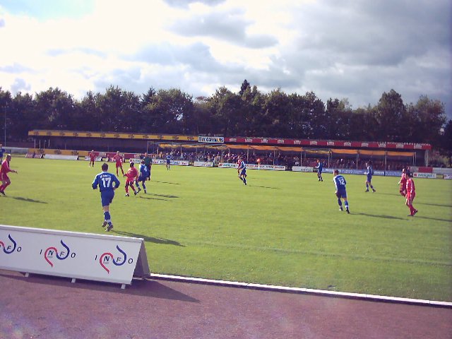 Ein ganz wichtiger Sieg, bleibt so doch der Kontakt zur Spitze erhalten. In Cloppenburgs Speedway-Stadion angekommen konnten wir zunächst an einem freundlich von den Gastgebern zur Verfügung gestellten Fahnenmast unser Banner hissen. Arminia begann stürmisch und brachte die BVC-Abwehr gehörig in Bedrängnis. Mehrere Torchancen konnten in den ersten Minuten verzeichnet werden. In der 19. Minute erfreute uns Tugay Tasdelen mit einem Kabinettstück. Im gegnerischen Strafraum erhielt er den Ball, stand zirka 45 Sekunden mit diesem am Fuß auf der Stelle und schob dann überlegt ein. Der Jubel war noch nicht verklungen, da passte Markus Erdmann quer zu Nima Habibian, der keine Mühe hatte zum 2:0 für die Götter zu vollstrecken. Arminia auch in der Folge überlegen, Torchancen für die Cloppenburger gab es in der ersten Halbzeit nicht. Dafür gestikulierte der Co-Trainer der Gastgeber an der Linie wie jemand, der sich beim Casting für die Sat 1-Klapsmühlenseifenoper "Die Anstalt" wähnt. Erstaunlicherweise wurden wir auch nicht von Egon Müller überfahren oder noch schlimmer von einem seiner Lieder belästigt. Aber wir mussten unsere Pfandflaschen gegen die sammelwütige einheimische Jugend verteidigen. Nach der Pause spielte der BVC mit dem Wind im Rücken und hatte innerhalb einer Minute dreimal die Gelegenheit zum Anschlusstreffer, doch Daniel Lüders hielt phantastisch. Fortan waren die Südoldenburger zwar optisch überlegen, aber die Giganten im blauen Dress konterten gefährlich. Torchancen gab es nun auf beiden Seiten. Eine nutzten die BVCler zum, aus ihrer Sicht, 1:2 (83.). Warum der Schiedsrichter ridikulöserweise eine Partie, die von den Teams äußerst fair geführt wurde und in der es keine Verletzungsunterbrechungen gab, um ganze sieben Minuten verlängerte wird auf ewig sein Geheimnis bleiben. Dirk
