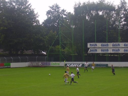 Beste äußere Bedingungen erwarteten die Zuschauer am Bischofsholer Damm, die bei diesem Spiel auch die gesanglichen Darbietungen der Leeraner Anhänger genießen durften. Bei der Mannschaft des SV Arminia hatte es unter der Woche aufgrund einer umgehenden Virusinfektion eine eher überschaubare Trainingsbeteiligung gegeben und offenbar war diese Krankheitswelle noch nicht überwunden, denn einige Akteure liefen sichtlich langsamer als gewohnt über den heiligen Rasen des Tempels der Fußballkunst. Dies wurde schon in den ersten Minuten deutlich, als die Ostftriesen immer wieder mit einfachsten Mitteln gefährlich vor dem, von Sebastian Knust gehüteten, Tor des SV Arminia auftauchten. Nach zwanzig Minuten musste Knust dann auch hinter sich greifen. Einen Schuss aus Nahdistanz konnte er noch parieren, aber das Leder sprang dem Germanen noch einmal an das Bein und von dort ins Netz. Jetzt wurden auch die Götter im weißen Dress etwas stärker und schon geriet auch der Keeper der Germania ins Blickfeld. Aber gleich zweimal verhinderte das Leichtmetall des Tores den Ausgleich für den SVA. Durch das eigene Vorrücken mussten sich die Bischofsholer immer wieder schnellen Konter des VfL erwehren, die stets für brenzlige Situationen sorgten. Bis zur Halbzeit blieb es aber beim 0:1. Nach dem Wechsel verflachte die Partie immer mehr und nur ganz selten gab es in den Strafräumen beider Mannschaften etwas zu sehen. Der Lahmannhügel passte sich dem Geschehen auf dem Feld weitgehend an und stellte die Unterstützung des Teams nahezu ein, während die Supporter des VfL Germania dreisprachig ihre Mannschaft anfeuerten. Mitte der zweiten Hälfte gelang den Gästen der zweite Treffer durch einen unhaltbar abgefäschten Schuss und dies war dann auch schon der Endstand, denn weiter passierte nichts mehr auf dem Geläuf. Hoffen wir, dass die Leistung der Arminia tatsächlich auf die zirkulierende Infektion zurückzuführen ist, denn so schlecht wie gegen Leer sollte nicht noch einmal gespielt werden. Dirk