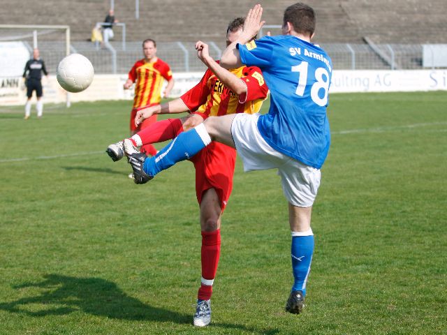 Ein ganz wichtiges Spiel stand im sonnigen Stadion am Bischofsholer Damm auf dem Programm. Beiden Teams war nur mit einem Sieg geholfen und so tasteten sich die Mannschaften nach dem Anpfiff erst einmal ab. Nach und nach hatte dann Arminia mehr vom Spiel, während die Northeimer auf Konter setzten. Einige Torgelegenheiten für die Götter im blauen Dress waren auch zu verzeichnen, die Führung erzielte allerdings kurz vor der Pause der FC Eintracht. Garip Capin ging aufgrund eines Fouls im Mittelfeld des Spielgerätes verlustig, die Rot-Gelben nutzten die Fehlentscheidung und kamen zu einem Kopfballtor. Doch noch während der Spielstand an der Anzeigetafel geändert wurde, durfte man sich über einen Pfiff des Referees freuen. Michael Zydek war im Strafraum gelegt worden, als er gerade erneut auf das Northeimer Gehäuse schießen wollte. Tugay Tasdelen verwandelte gewohnt sicher und so ging es mit einem 1:1 in die Kabinen. Nach Wiederanpfiff waren viele kleine Fouls zu sehen, wobei der Unparteiische selten zugunsten des SV Arminia entschied und den Northeimern einige gefährliche Freistoßsituationen bescherte. Die Blauen hatten aber deutlich mehr Zug zum Tor und so wurde es jetzt häufig brenzlig im 16-Meter-Raum der Vorharzer. Es blieb Zydek vorbehalten nach schönem Zuspiel von Tasdelen das 2:1 zu erzielen. Überlegt schob er das Leder am Keeper vorbei in die Maschen. Die Northeimer bäumten sich nach dem Führungstreffer für den SVA noch einmal auf, aber bis auf einen Aluminiumtreffer gelang ihnen zum Glück nichts. Arminia hatte auch noch weitere Torgelegenheiten und einige Ansätze, die vom Schiedsrichter verhindert wurden. So legte sich Tasdelen den Ball schön mit dem Kopf selbst vor und war schon allein vor dem Northeimer Schlussmann, als auf Abseits von Zydek entschieden wurde. So blieb es beim verdienten 2:1-Sieg, der natürlich ausgiebig gefeiert wurde. Dirk