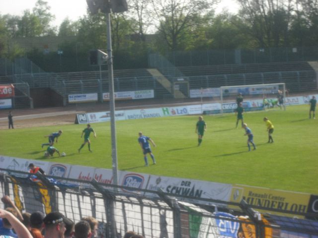 Frühe Anreise war angesagt, weil die Fans der Oldenburger zum Frühschoppen im Fanprojekt geladen hatten. Spiele in Hamburg hatten einige Arminen dazu genutzt, schon am Vortag in die Huntestadt zu fahren. Da auch Göttinger und eine Delegation aus Altona anwesend waren, wurde die Zeit bis zum Aufbruch mit lustigen Gesprächen und ebensolchen Getränken verbracht. Anschließend versammelte man sich hinter dem Antirassismus-Banner und ging lautstark in Richtung Stadion. Dieses präsentierte sich, ob der hohen Temperaturen, als großer Grillplatz. Mit dem Anpfiff zeigte sich schnell, dass die Platzherren sich nach dem Trainerwechsel einiges vorgenommen hatten. Schnell sahen sich die Blauen in die Defensive gedrängt, aber die erste Drangperiode überstanden die Götter in grünen Dress schadlos und nach einer Weile wagte sich der SV Arminia auch weiter nach vorn. Tatsächlich gab es auch eine große Chance zur Führung, aber Oldenburgs Keeper konnte Michael Zydeks Schuss parieren. Im Anschluss daran waren die Gastgeber wieder am Drücker, richtig gefährlich war aber nur ein Lattentreffer. Völlig allein vor dem, von Sebastian Knust gehüteten, Gehäuse der Arminen bestätigte der Oldenburger Stürmer die eigenen Anhänger, die schon im Vorfeld die mangelnde Chancenauswertung moniert hatten. Mit dem 0:0 ging es in die Pause und nach Wiederanpfiff griff der VfB weiter an und Arminia beschränkte sich auf Konter, die aber selten bis vor das gegnerische Tor vorgetragen werden konnten. Da aber die Oldenburger nicht gerade ein Feuerwerk im Strafraum der Bischofsholer abbrannten, richtete man sich langsam auf ein torloses Unentschieden ein. Zwar verweigerte die Schiedsrichterin Arminia einen Freistoß in aussichtsreicher Position, als der Schlussmann des VfB mit dem Ball in der Hand aus dem Sechzehner sprang, aber man war doch zuversichtlich. Doch dann segelte kurz vor dem Ende eine Maßflanke genau auf einen Oldenburger Schädel und prallte von dort ins Tor. Das 1:0 für die Huntestädter und gleichzeitig das Endresultat, denn gleich darauf wurde abgepfiffen. Nach kurzen Momenten der Schockstarre ging es wieder ins Fanprojekt, wo man den Spieltag mit ein paar angemessenen Getränken ausklingen ließ und den Blick gen Stade richtete. Soweit das noch möglich war. Dirk