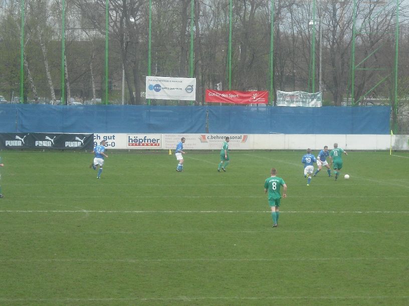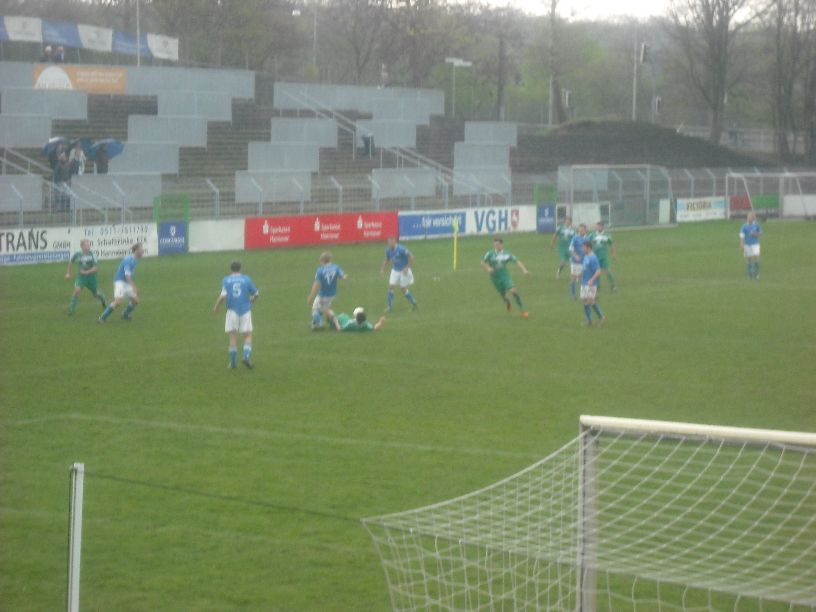Pünktlich eine Stunde vor dem Anpfiff begann es zu regnen und so waren einige der Anwesenden, die auf eine Fortdauer des Sonnenscheins gehofft hatten, nicht so richtig auf sinkende Temperaturen vorbereitet. Aber die Frierenden konnten sich durchaus am Spiel des SV Arminia erwärmen. Von Beginn an war die Einsatzbereitschaft der gesmten Mannschaft erkennbar, was sich auch in deutlich größeren Spielanteilen niederschlug. Auch Torgefahr wurde generiert, doch erst kurz vor dem Halbzeitpfiff konnten die Zuschauer die Arme in die Höhe reißen. Dennis Laszus hatte nach schöner Kombination den Ball im Gehäuse der Burgdorfer Vorstädter untergebracht. Kurz darauf hätte er fast noch auf 2:0 erhöht, nur knapp strich sein Schuss am Tor vorbei. In der zweiten Hälfte kamen die Gäste etwas auf, Arminias Schlussman Christoph Heckert musste aber nur selten sein Können zeigen, waren die Angriffsbemühungen der Heesseler doch insgesamt zu ungefährlich. Anders die Götter im blauen Dress, die die Gepilgerten,