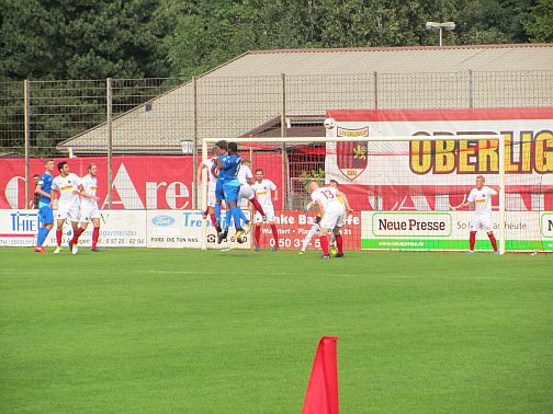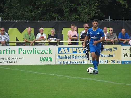 Die kürzeste Auswärtsfahrt führte uns bei sehr schwülem Wetter an die Barne. Durch ortskundige Führung gelangten wir relativ schnell vom Bahnhof zur sogenannten Arena, wo wir an der Kasse erst einmal Schlange stehen mussten. Grund dafür war, neben den gepilgerten Massen aus Bischofshol, eine Hundertschaft Schiedsrichter in Ausbildung. Diese blockierte auch sogleich den einzigen Getränkestand und so mussten die Durstigen bis zum Anpfiff auf ihre Erfrischung warten. Auf dem Rasen entwickelte sich nach der ersten Pfeifenbenutzung ein verteiltes Spiel. Beide Mannschaften hatten Chancen zur Führung, man muss aber zugeben, dass die Gastgeber dabei ein leichtes Plus hatten. Beim Stande von 0:0 wurden die Seiten gewechselt und zunächst sah es so aus, als ob das Spiel nahtlos an die erste Hälfte anknüpfen würde, doch dann folgten die acht Minuten des Grauens. Ein verlorener Zweikampf im Mittelfeld leitete das 1:0 der Wunstorfer ein und gleich danach landete ein Einwurf an der Sechzehnmeterlinie, ein Spieler der Platzherren fackelte nicht lange und traf direkt ins rechte Eck des von Sascha Algermissen gehüteten Tores. Damit nicht genug, denn auch der nächste Schuss der Wunstorfer zappelte im Netz. so stand es eine halbe Stunde vor Ende 3:0 und die Partie war gelaufen. Wunstorf lauerte nun auf Konter und die Blauen fanden kein Mittel durch die dicht gestaffelte Abwehr. So plätscherte die Begegnung ohne weitere große Höhepunkte dem Abpfiff entgegen. Als Erkenntnis kann man mitnehmen, dass gerade im Spielaufbau noch Luft nach oben ist und dass man sich gegen Gegner wie Wunstorf keine Schwächeperioden erlauben darf. Dirk